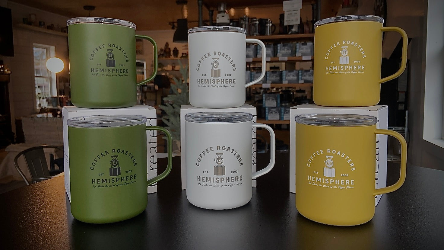 Designed to fit comfortably in your hand. The Roam mug features a spill-resistant, slider lid. Crafted from double-walled stainless steel, the Roam mug keeps your favorite Hemisphere coffee at the perfect temperature.